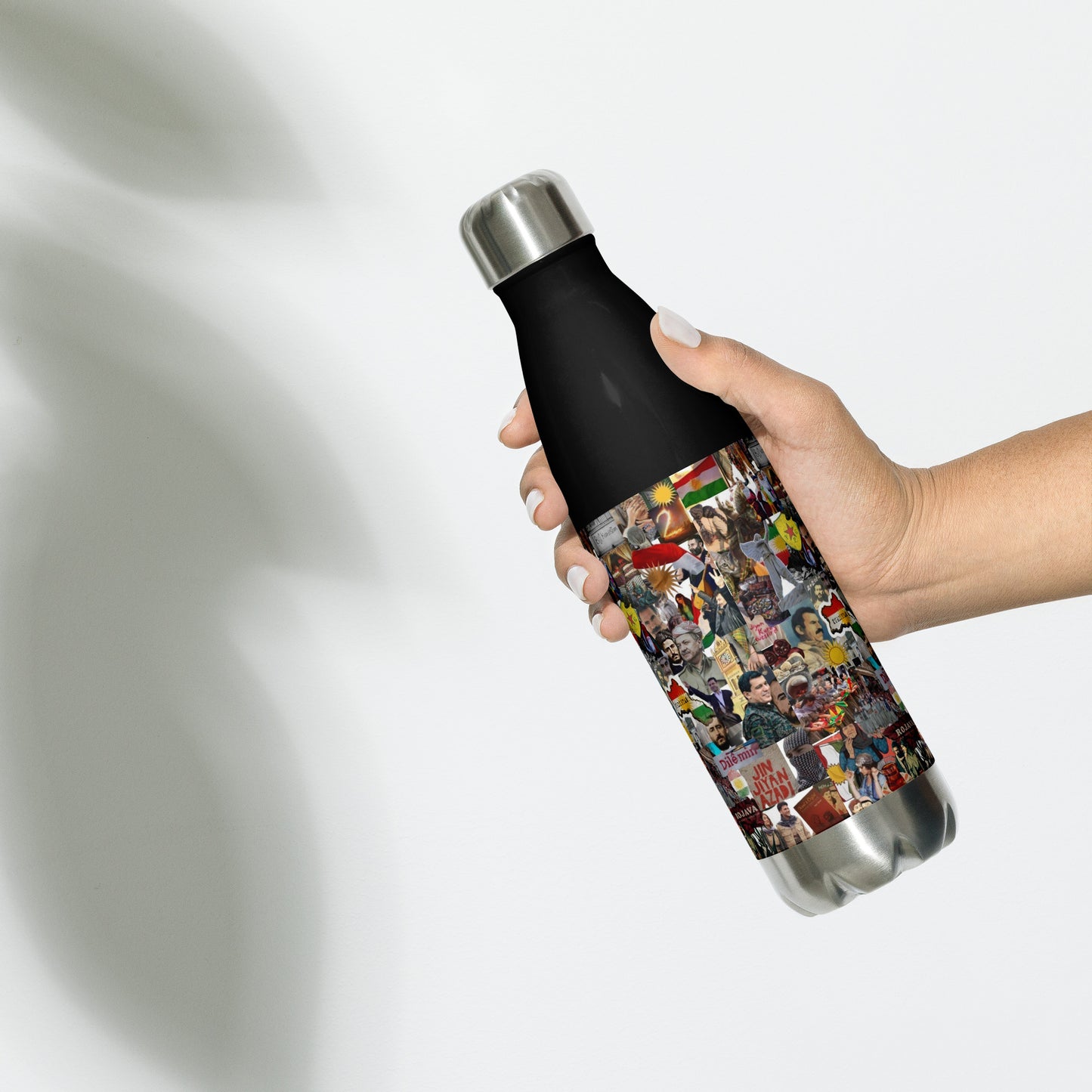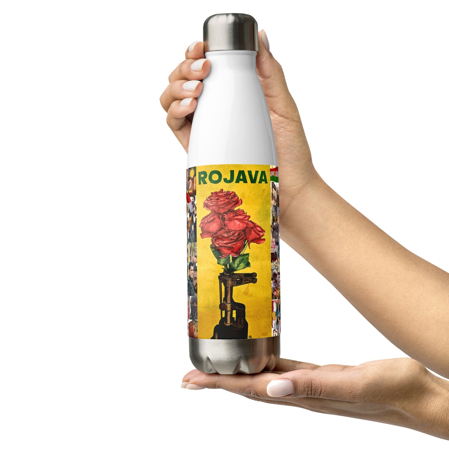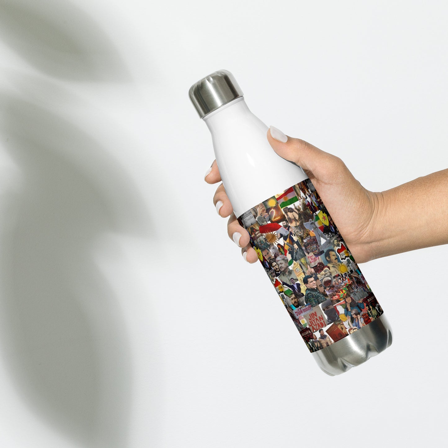 This Rojava Stainless Steel Water Bottle features a unique "2+2=1" design symbolizing unity, adorned with the vibrant Kurdistan flag. Crafted for durability and style, it serves as a practical daily companion while proudly showcasing Kurdish heritage. Designed by Marsoniprint, this bottle combines cultural significance with high-quality craftsmanship.